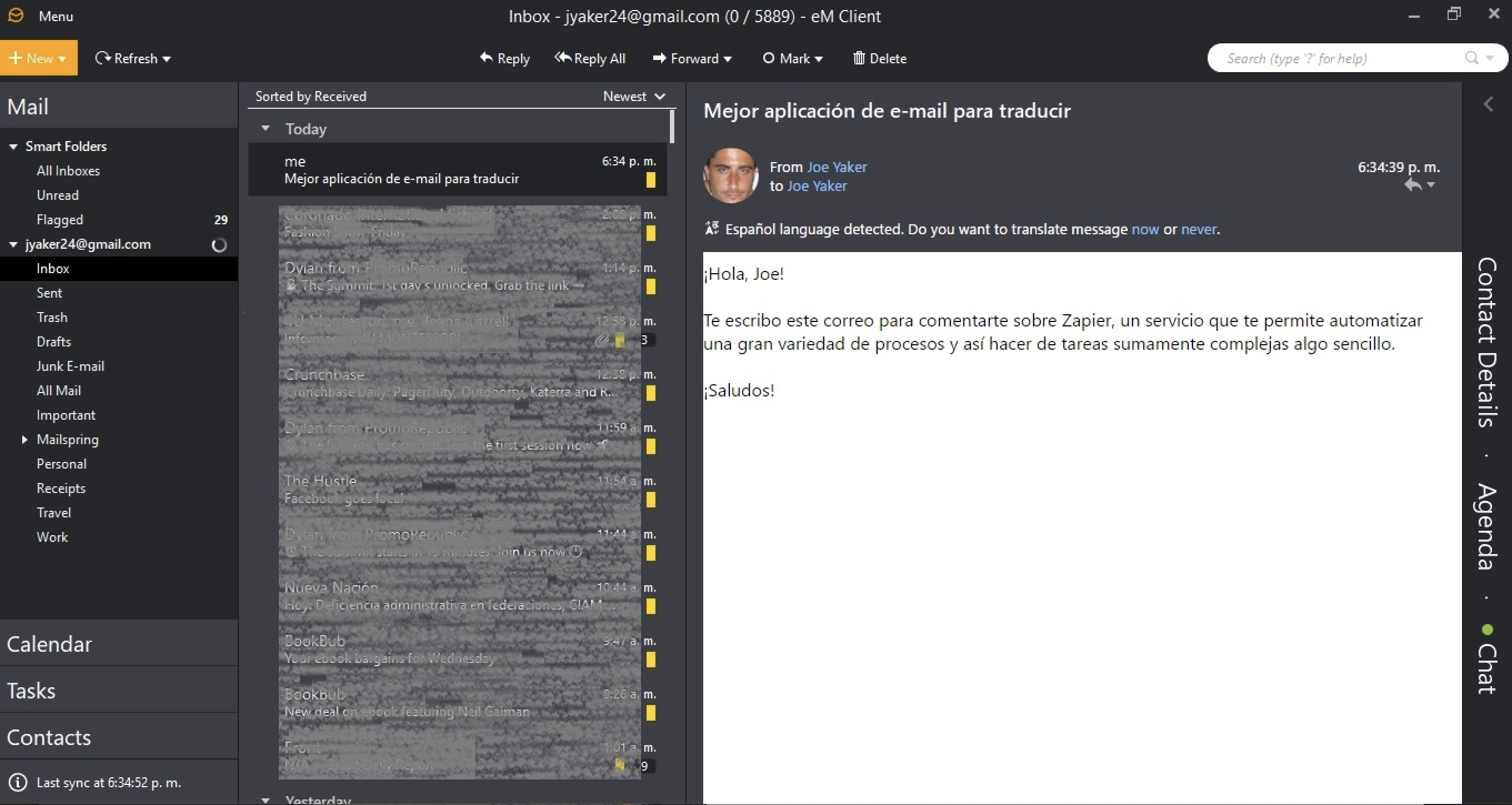 eM Client handles all the basic features expected of the best email apps. But its stand out feature is its ability to translate emails sent in 39 languagesright within the app. eM Client will automatically detect the language and provide the option to translate with a simple click right beneath the contact information.