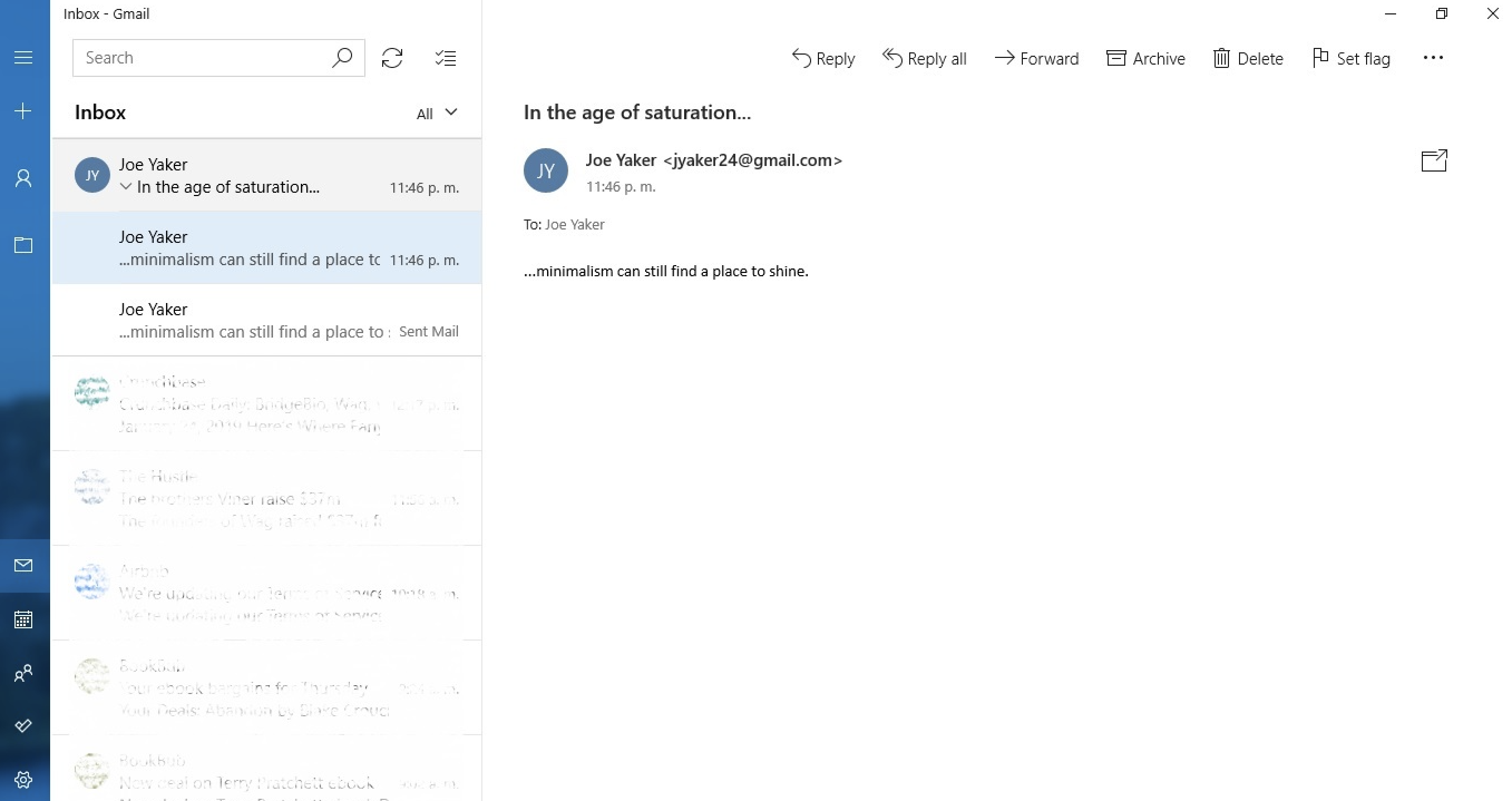 Windows Mail is the default app that comes pre-installed on Windows, and it's as simple as it gets. If you're a Windows user to your core, you'll appreciate the native feel.