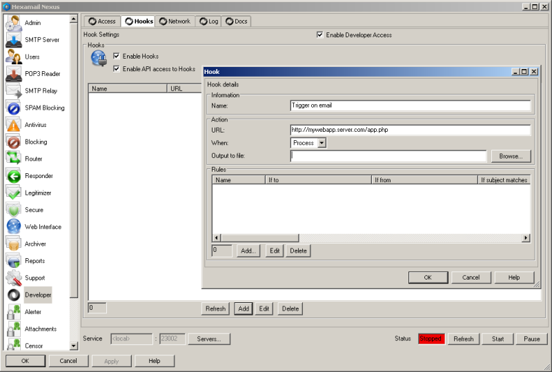 This is a guide to setting up email webhooks using Hexamail POP3 Downloader