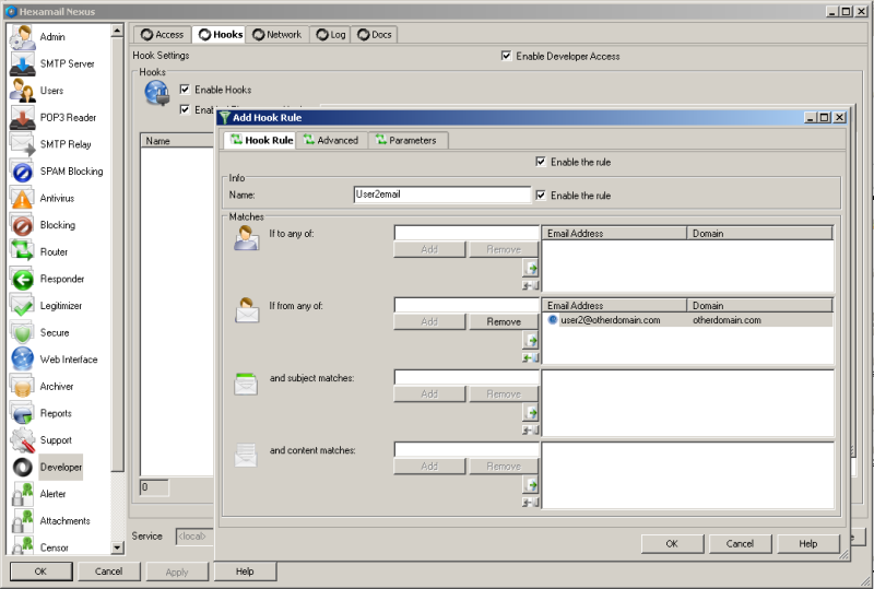 Once done press OK to exit the rule, and OK to exit the hook and then remember to press APPLY once all your rules and hooks are added to send the new configuration to the server