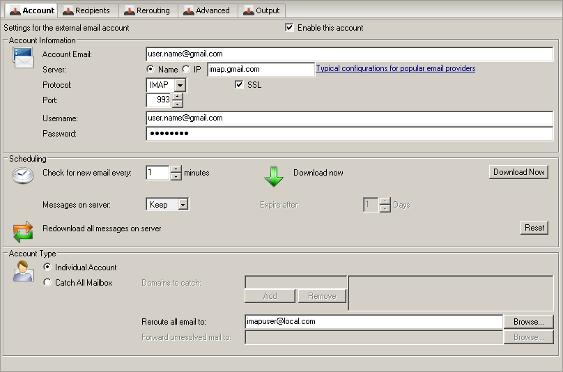 In Hexamail Server admin go to POP3 Reader/System Accounts/ and press the New button