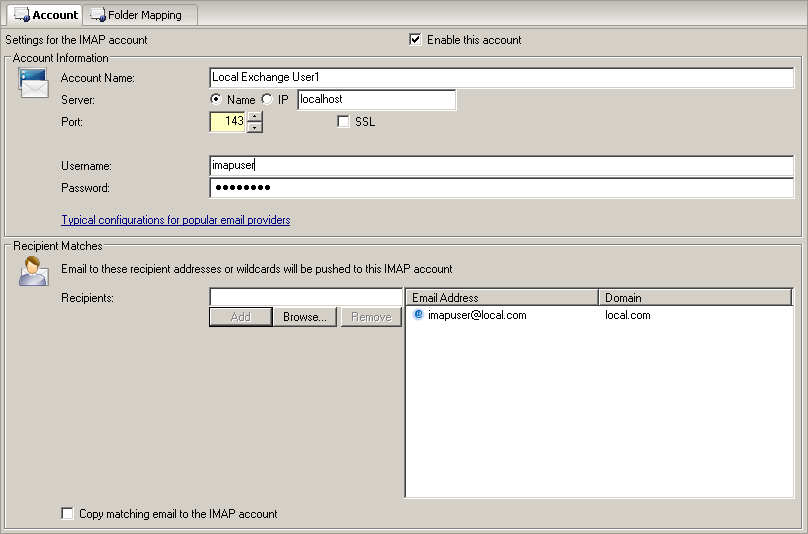 Set the Recipient email address as the email address of the DESTINATION IMAP Account, as used in step 1.