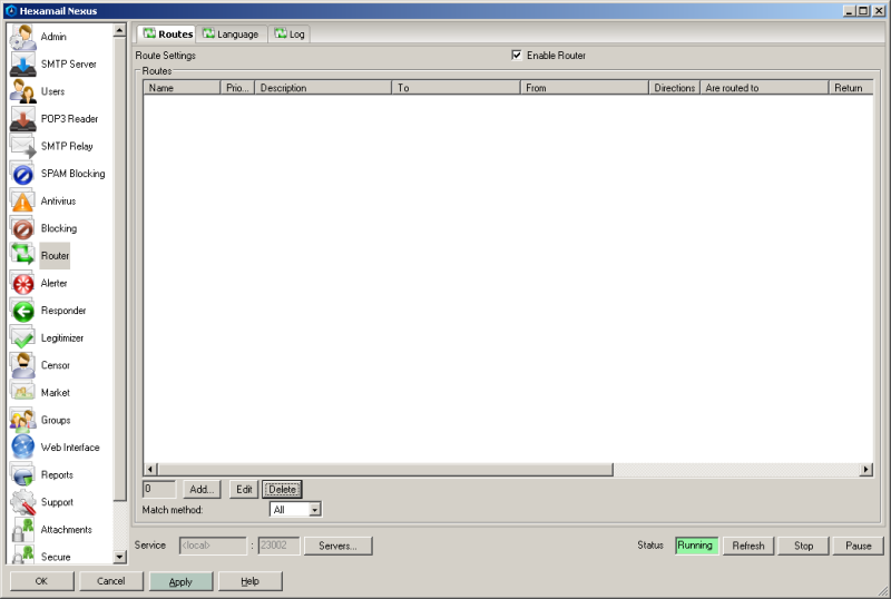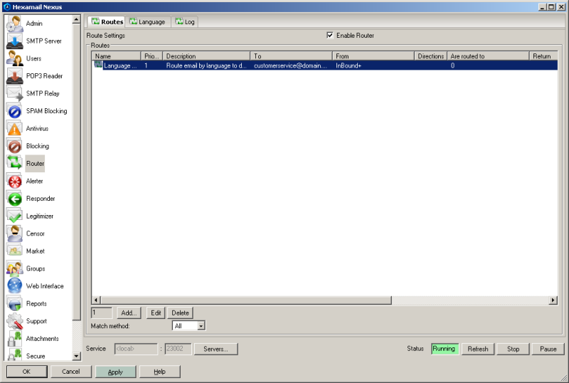 Once you have configured all the routes and rules you require press APPLY to start using the new configuration to route email