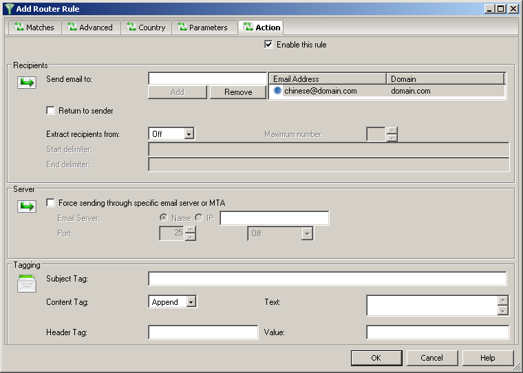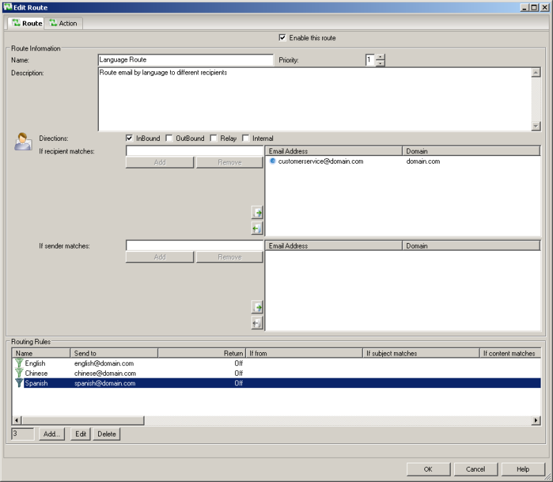 In this case we want to send all English email to a specific address, english@domain.com as our example