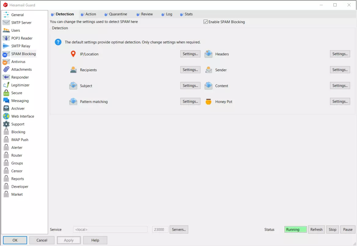 Hexamail offers more detection options than any other product, allowing you to trap the maximum amount of SPAM and at the same time ensure your legitimate emails never get blocked