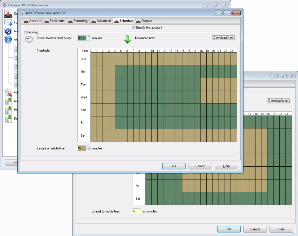 Configure each download job with separate download intervals and a timetable to define limited and normal schedule