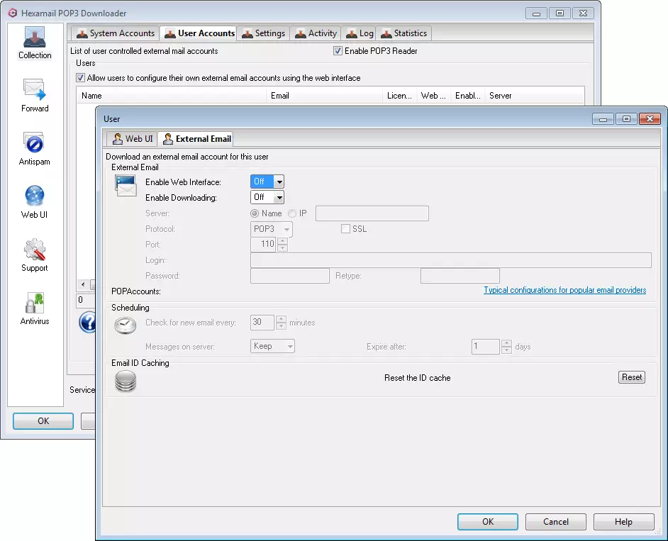 Optional antispam module offers the most comprehensive spam blocking features to provide a pop3 collection with built-in antispam. Prevent spam getting to your server reducing server load and storage requirements.